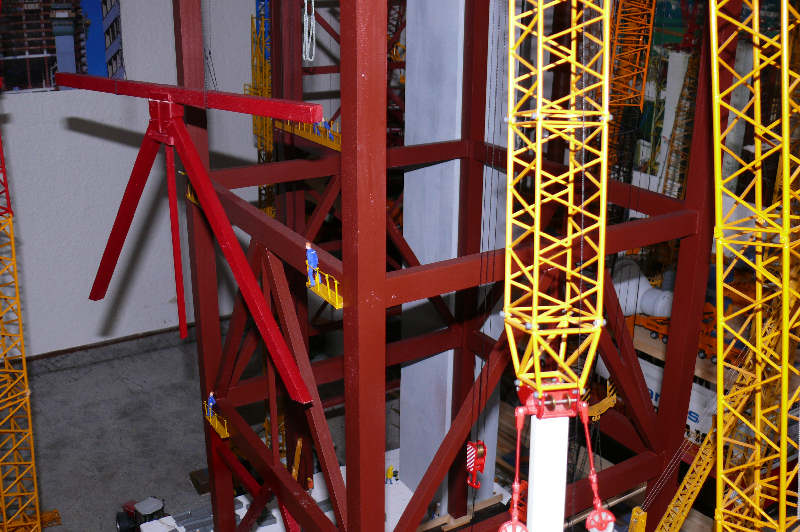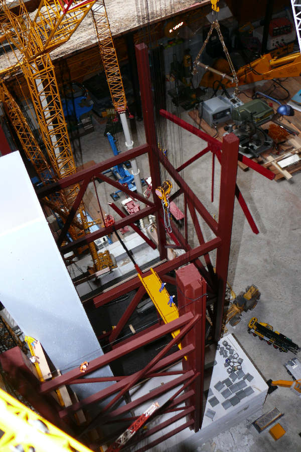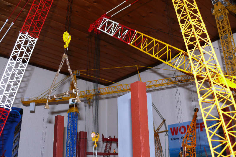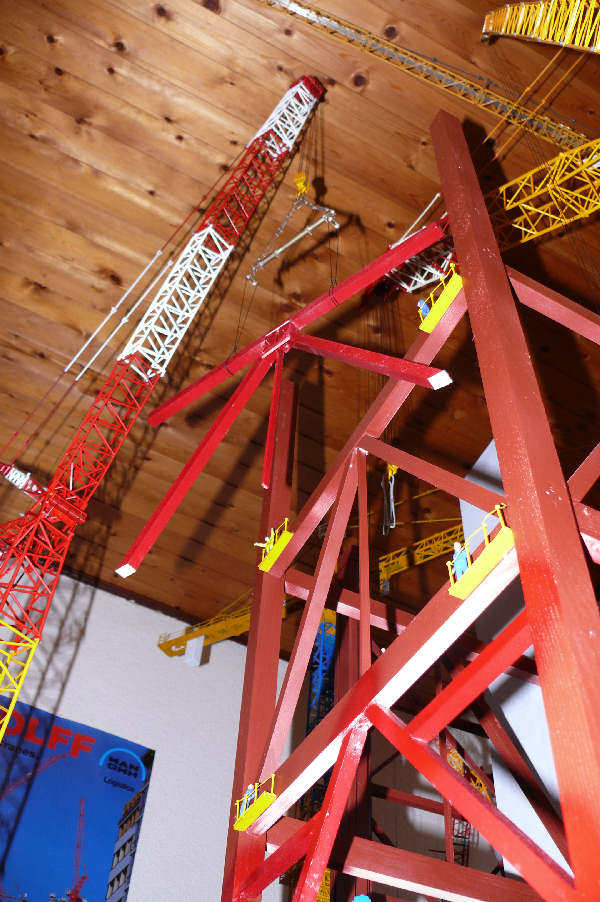 Was ursprünglich nur eine stilisierte Hubsimulation sein sollte , beginnt ein detailiertes Diorama zu werden, auf dem die verschiedensten Großkrane so richtig was zu tun bekommen.