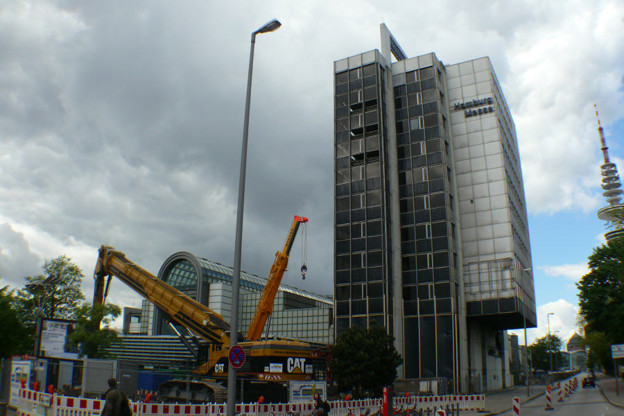 An der Hamburg Messe wird der sogenannte Messeturm an der St. Petersburger Straße / Bei den Kirchhöfen abgebrochen. Dort soll ein Neubau entstehen.
