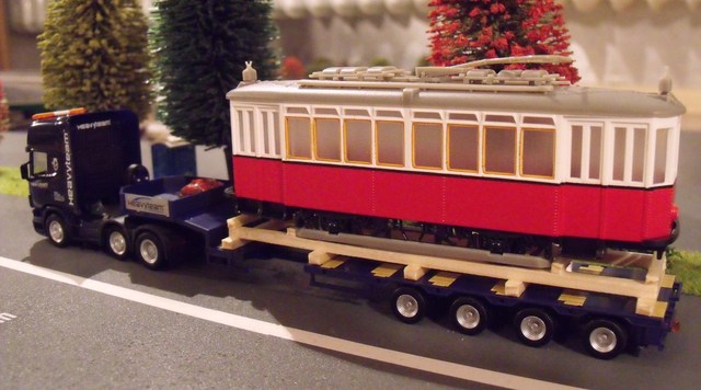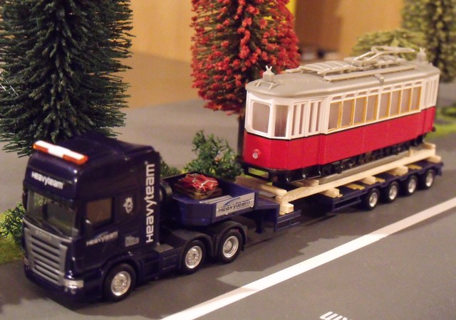Heute zeige ich euch mal ein Hepa standart Modell eine Scania R von Heavyteam Kufstein beladen mit einen Triebwagen Typ K der Wiener Straßenbahn.