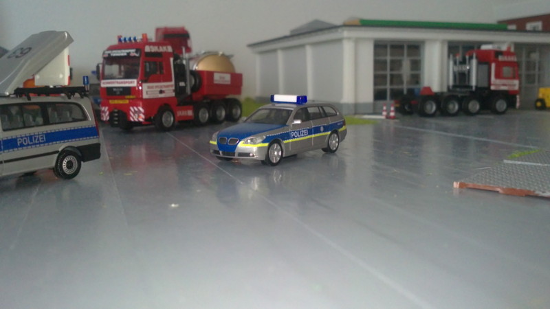 Die Polizei und die Reserve Zugmaschiene gehen in Position, Der Zug nährt sich Langsam der Ecke