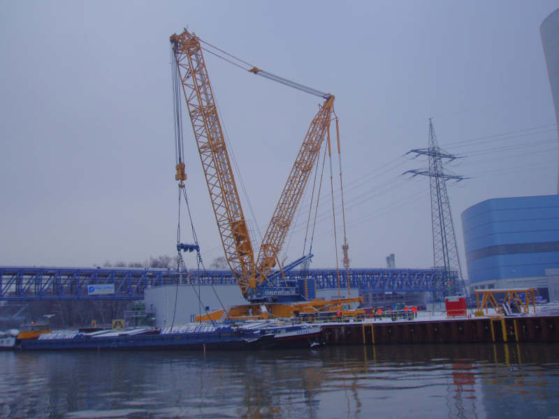 Was mir aber bei allen Auslegerkürzungs-Prinzipien noch nicht gang einleutet ist der Umgang mit dem Festpunkt des Haupthubseils und die Umlenkrolle für das Katzfahrseil. Mit der hier diskutierten Prozedur wird ja das fordere Auslegerstück demontiert. Da muß doch vorher die Umlenkrolle vom Katzfahrseil an eine neue Postion gebracht werden. Wir dort eine Behelfsrolle installiert? Auch das Hubseil müßte doch irgendwo am Ausleger noch fest sein; oder wir das einfach an der Katze festgemacht, was ja auch reichen müßte?