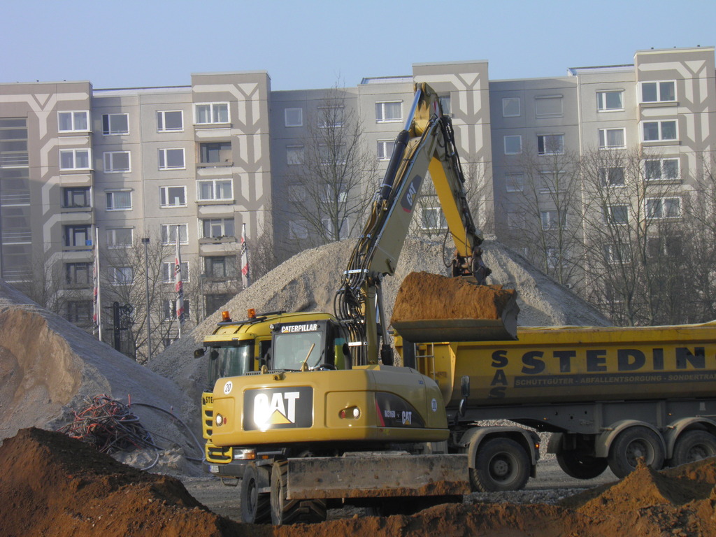 - Maschine wurde ausgetauscht Ein Radlader der Firma Hagedorn verlies die Baustelle und es war somit noch die Leihmaschine vor Ort. Diese wurde in dieser Woche abgeholt und durch einen neuen Radlader der Firma Hagedorn ersetzt. An den Firmen.Aufklebern kann man erkennen, das es sich hierbei um ein neueres Modell handeln muss, da die Firmenfarbe rot noch nicht lange existiert. Die etwas älteren Maschinen, tragen alle einen grünen Schriftzug der Firma Hagedorn.
