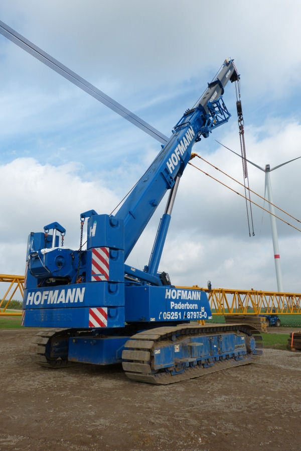 Es werden Nordexanlagen gestellt, vor Ort ist ein LR 1600-2 von Sarens (für Hofmann) und ein LTR 1100 von Hofmann.