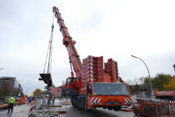 Thömen LTM 1250-6.1 diverse Fahrszenen an unterschiedlichen Einsatzorten. Hafencity, Willy Brandtstraße und Wendenstraße (Olympus Campus)