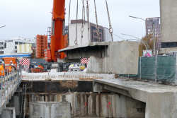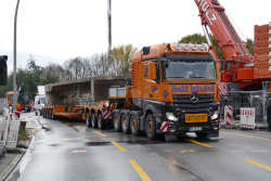 Krandienst Schulz und Rolf Riedel Brückenabbruch und Transport von Betonbindern.