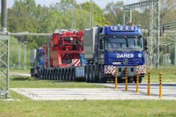 DAHER Logistik Nächtlicher Trafotransport vom Umspannwerk Kummerfeld zum Ostbahnhof in Uetersen.