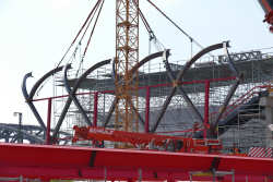 Demag AC 650 (VOUTAS CRANES) assembling the roof (Cimolai) of AEK FC new stadium