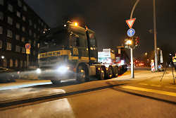 Thömen Nächtliche Anlieferung von Brückenteilen für die neue Bahnbrücke über die Bille in Hamburg Rothenburgsort.