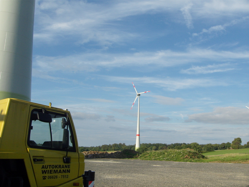 Ca. 15 km von den 3 Anlagen in Rixfeld entfernt geht es jetzt im Windpark Helpershain weiter. Helpershain liegt ca. 15 km seitlich neben Lauterbach, bei Ulrichstein, wie alle Orte im Vogelsbergkreis in landschaftlich reizvoller Gegend. Der Vogelsbergkreis bietet noch sehr viel andere Fotomotive, nicht nur Krane und WKA Baustellen.