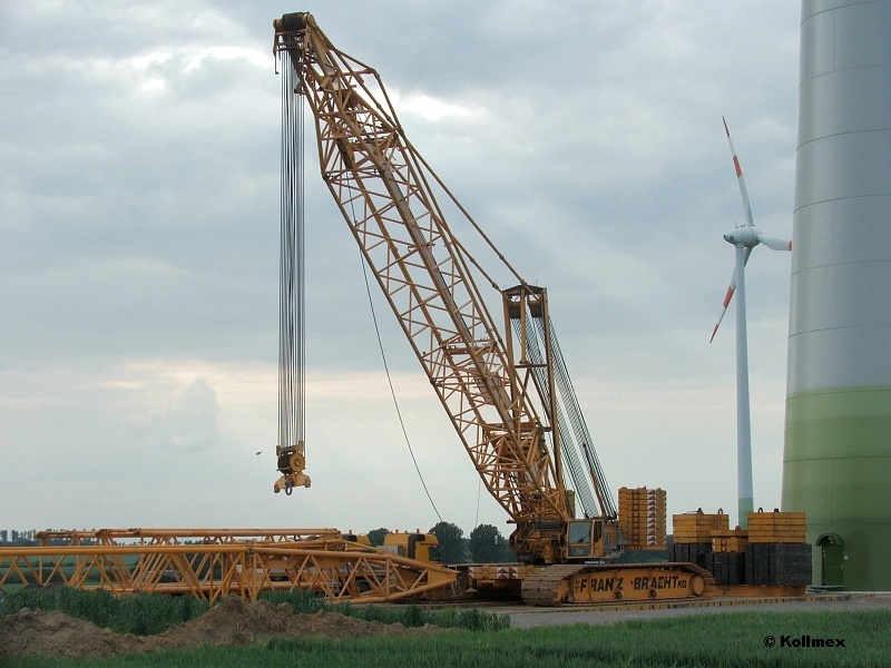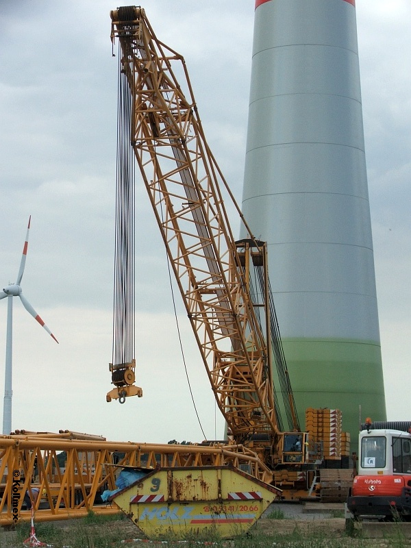 Eine E-53 kann das auf keinen Fall sein, denn auf ca. 60m kommt man schon mit nur 3 einzelnen Turmsegmenten und "unsere" E-82er stellen die hier mit nur 4 Segmente auf 78m Nabenhöhe. Der Aufwand (wie oben zusehen) für einen 70er Turm, wäre viel zu hoch und auch viel zu teuer. In den letzten Jahren hat man bei uns auch vermehrt Enercon E-70/4 2300KW mit 3 Turmsegmente auf 57-59m NH gebracht.