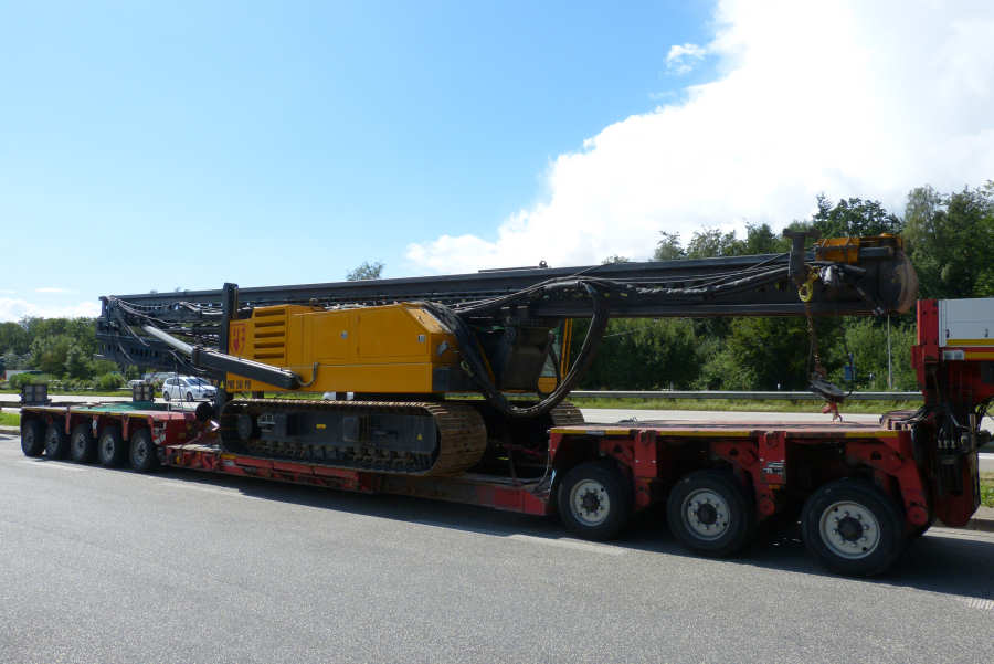 Übrigens: An der Hochschule Darmstadt (ehemals FH Darmstadt), Fachbereich Industriedesign (Prof. Tino Melzer), gab es mal eine Diplomarbeit zum Thema Schreitbagger (Sebastian Becker, 2010). Der dort gezeigte Entwurf sah einen Bagger vor, der so klein zusammenfaltbar war, dass er locker in einen ISO-Container gepasst hätte (obwohl die Transportlösung nicht explizit dargestellt war) – OK, man muß natürlich dazu sagen, dass es auch ein deutlich keinerer Bagger als ein Menzi M5 war; ich schätze so die Größe eines Menzi M2 oder sogar nur Menzi A20. Inzwischen habe ich auch noch eine ausführlichere Darstellung dieses Schreitbaggerkonzeptes gefunden. Dort sind weiter unten auch ein paar Transportbilder gezeigt, allerdings in der klassischen Varianten des LKW-Transports. Trotzdem ein sehr sehenswertes Konzept.