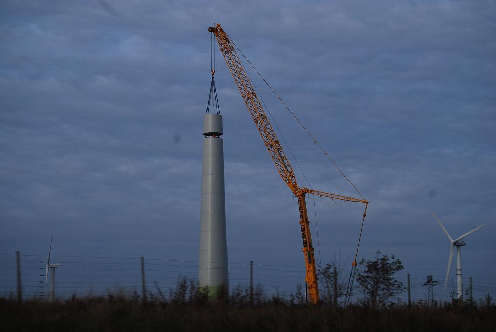 Naja sind nur noch 5 Anlagen zu montieren (Hütte + Rotor), es waren schon mehrere LKW von Bracht da, die Ladungssicherung sah mehr als nur nach 200m Fahrt aus.