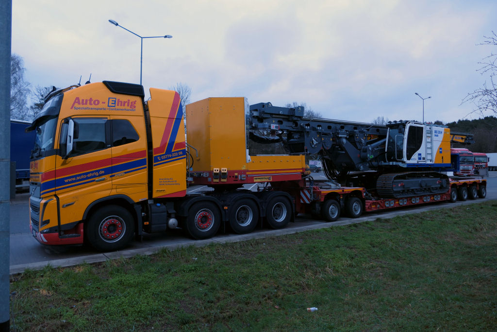 Der Bagger der auf Seevetal stand, war nicht der von Michendorf, der ging nach Saudi Arabien, ausserdem stand er anders herum auf dem Auflieger