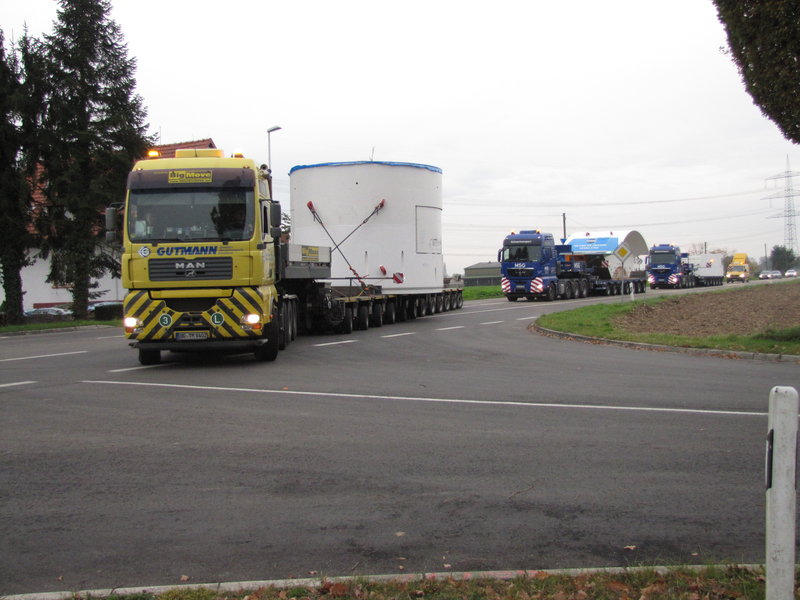 Gutmann fuhr in dieser Woche Teile einer Tunnelbohrmaschine aus der Nähe von Biel/CH nach Hause in die Ortenau. Der Transport fuhr diesesmal auch durch meine badische Heimatstadt Lörrach. Geplant war die Nacht von Donnerstag auf Freitag für die Durchfahrt in Lörrach. Aufgrund von Verzögerungen in der Schweiz wurde es dann allerdings die Nacht von Freitag auf Samstag (da konnte man dann wenigstens ausschlafen ). Ein weitere Transport durch Lörrach läuft von Mittwoch auf Donnerstag.