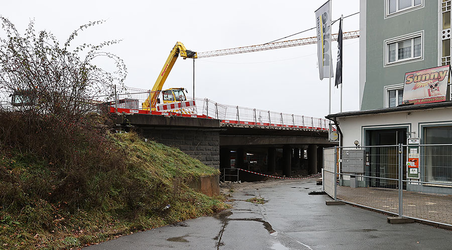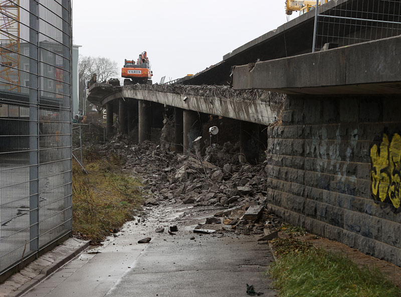 Die Brückenkappen der alten Bauwerke sollen, soweit ich den Nordbayerischen Kurier verstanden habe, auch relativ bald abgebrochen werden, der "Haupt-Abbruch" soll aber erst an zwei(!) Wochenenden im März stattfinden. Letzteres wundert mich aber ein wenig. Wenn man den Abbruch komplett in den Wintermonaten machen würde - wie bei den ersten beiden Rampen auch - könnte man März direkt mit den Gründungspfählen für den Neubau beginnen.