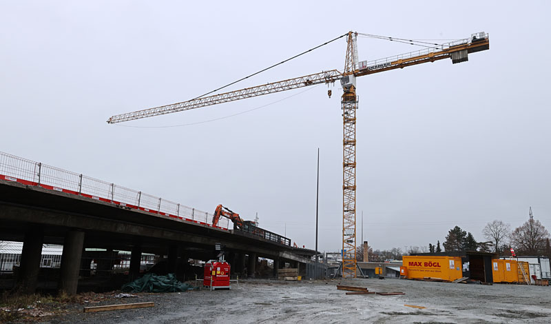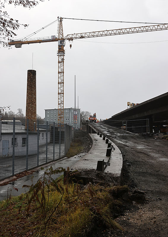 Hier war's auch lange ruhig... Inzwsichen sind die beiden neuen Rampen fertiggestellt, im Lauf der letzten Woche wurde die Verkehrsführung stückweise auf den nächsten Bauabschnitt umgestellt: Über die beiden neuen Rampen läuft der Verkehr ausschließlich stadtauswärts(!), die eigentliche Brücke und die beiden alten Rampen sind gesperrt. Der Verkehr stadteinwärts wird offiziell über die Weiherstraße umgeleitet, tatsächlich gab's aber Donnerstag und Freitag stellenweise größeren Stau auch im Gewerbegebiet St. Georgen Ost. Mal schauen, ob sich das noch "zurechtruckelt"...