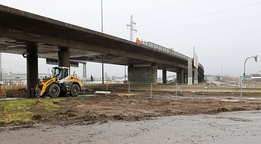 Unmittelbar nach der Sperrung der eigentlichen Brücke wurde bereits begonnen, den Asphalt von der Fahrbahn abzufräsen.