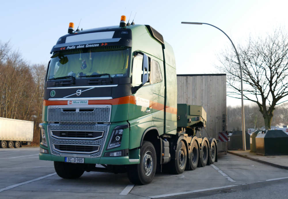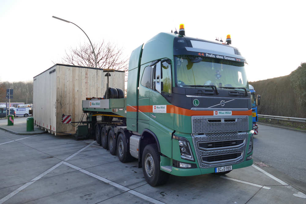 Max Wild Volvo FH 16 660 Euro 6 10x4 mit Goldhofer STZ VP 4 Und Maschinenkiste für den Export nach China