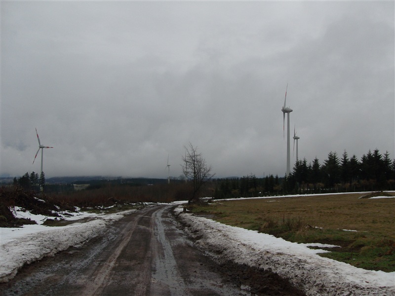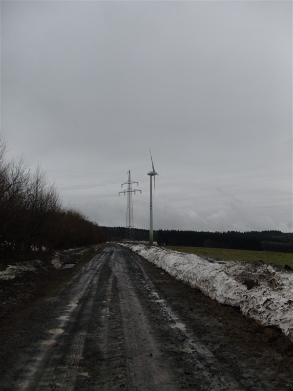 Dort steht eine kleine E66 mit ~ 60 Meter Nabenhöhe direkt daneben ist ein Parkplatz, etwas tiefer im Wald stehen noch 3 weitere E66 mit ~ 100Meter nabenhöhe sowie eine An Bonus Hinter den E66 steht dann auch der Kran von wem gestellt wird öh kann ich nicht genau sagen kenne mich da eher mit den Wka´s aus als mit den dingern wo die stellen