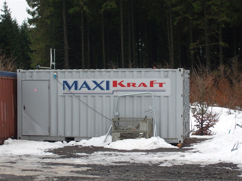 Aber es steht ein Container von ähm "MAXI KRAFT" da