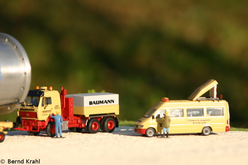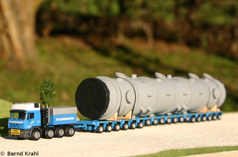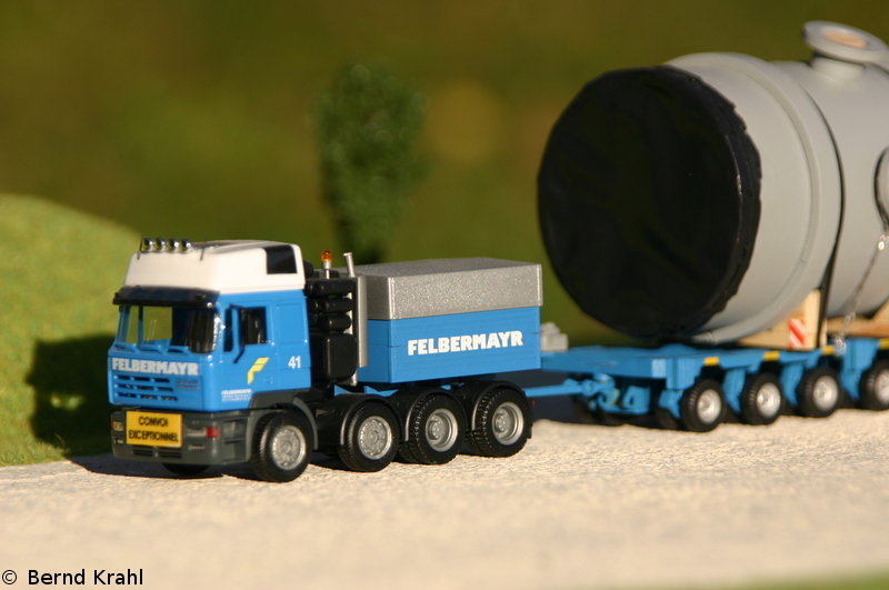 Die Zugmaschiene ist von Herpa, angehängt wurde Kibri`s Scheuerle