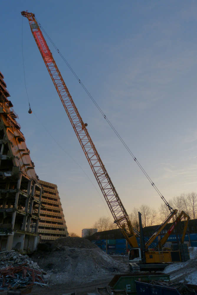 Hallo Sven, Anfang der 90ger Jahre wurde die " Fleetinsel " in der Hamburger Innenstadt bebaut. Im Handbuch des Schalungsherstellers PERI von 1992 gibt es einen Bericht darüber. In dem Bericht steht, es handelt sich um eines der letzten bedeutenden Grundstücke in der Hamburger Innenstadt. WTB Walter Thosti Boswau Niederlassung Hamburg war ausführendes Rohbauunternehmen, ob Wayss & Freytag auch dabei war, weiss ich nicht. Die von dir aufgezählten Krantypen waren da auf jeden Fall im Einsatz, ich habe da auch schon Bilder davon gesehen. Es entstanden eine Tiefgarage, Büros und das Steigenberger Hotel, das Grundstück war ziemlich lang, aber schmal und lag direkt am Wasser. PERI hat die Schalungen geliefert, unter anderem für 11 Meter hohe Sichtbetonstützen. Stell doch die Bilder mal ein, dann kann ich mehr dazu sagen, allerdings bin ich kein Hamburger, sondern kenne nur die Berichte und Bilder darüber. Irgendwo habe ich selber auch noch Bilder davon, auf den Bildern im Handbuch sind die Krane nicht zu sehen. Das Handbuch ist von der bauma 1992, also muss die Baustelle 1990/91 gewesen sein. Ich sehe gerade, dass nicht mehr WTB, sondern schon die Walter Bau AG gebaut hat, zumindest steht das so im PERI Buch... Ich hoffe, ich konnte dir weiterhelfen... Grüße Marcus |