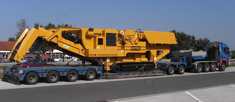 Die Ladung ist ein EXTEC C-12 Brecher. Laut hersteller mit 350PS CAT C-9 Diesel.