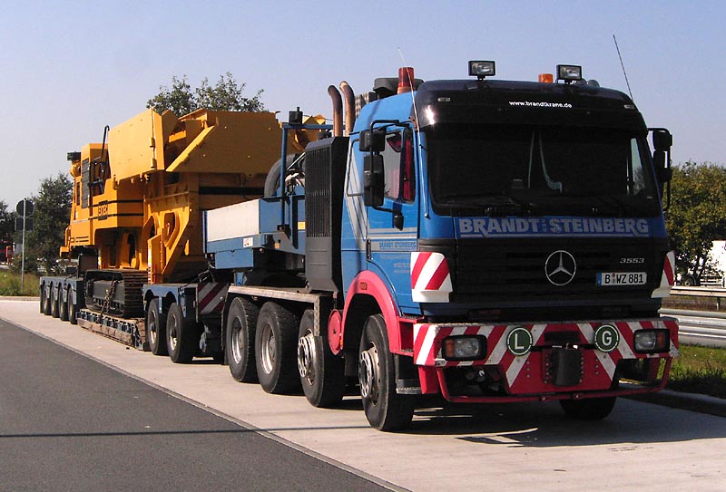 Am Rastplatz Ostetal Richtung HB (glaube ich doch) steht Firma Brandt mit 4 achsiger Schwerlast Mercedes-Benz SK und 6 Achsen ES-GE. Beladen mit einer recht neuen Brechanlage auf Raupenfahrwerk.
