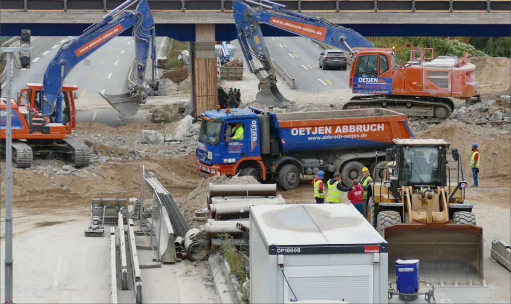 Dieses Wochenende wurde an der Autobahnausfahrt HH Billstedt beim zweitenTeil der B5 Brücke (nördlicher Teil, II BA.) Brückenbinder angeliefert und eingebaut.