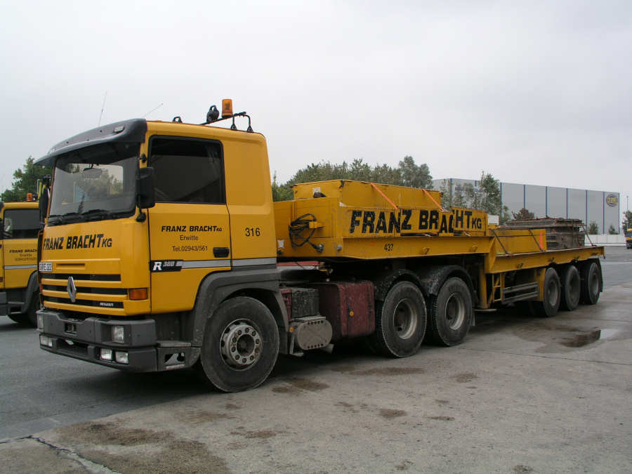 ich habe letztens an der freundlichen Baustelle am Teutoburger Wald einen Ballastauflieger von Bracht gesichtet, vielleicht weiss jemand, um welches Fabrikat es sich handelt (oder kann sogar ein Bild einstellen): 3 Achsen, doppelt bereift, Trilex-Felgen und die letzte Achse war drehschemelgelenkt. Das Ganze sah ausgesprochen massiv aus. Die Stadtbahn liess mir leider keine Chance, mehr Details zu entdecken.