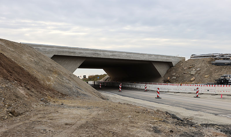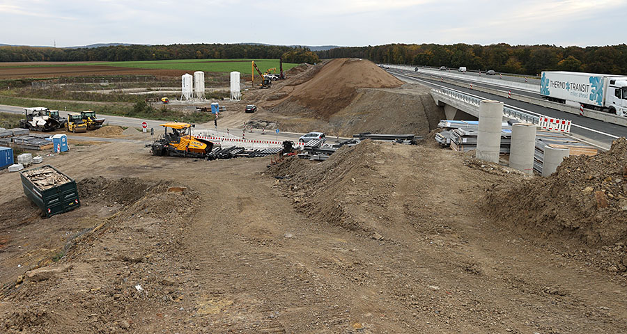 Von HÖS-Ost bis zur nächsten AS Pommersfelden ist man langsam mit dem Fahrbahnbau am Beginnen (RiFa WÜ). Auf Höhe Pommersfelden, wo die Brücke über die B505 neu errichtet wird: