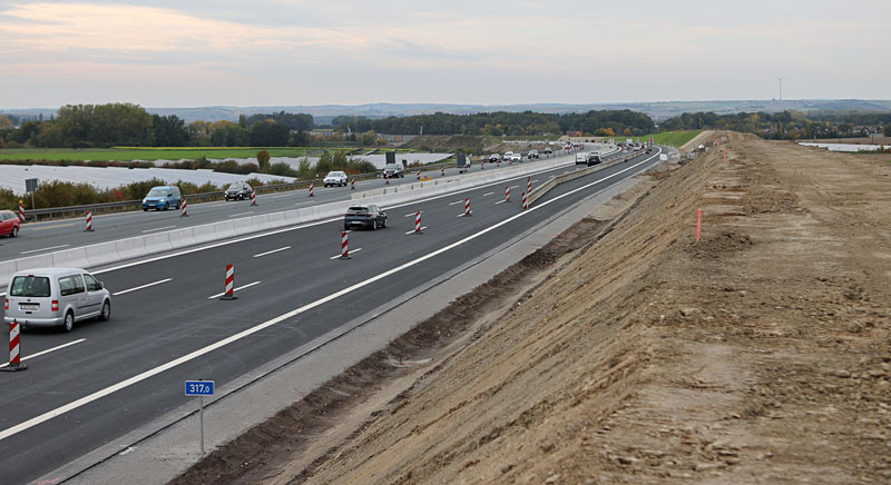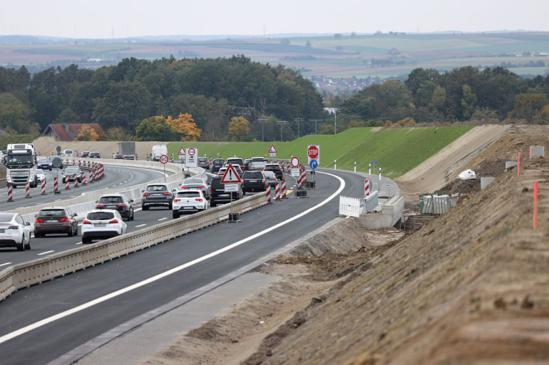 Zwischen der Anschlussstelle Wiesentheid und dem Kreuz Biebelried ist die neue Richtungsfahrbahn Frankfurt nun geöffnet und der Verkehr läuft zweispurig auf der jeweiligen Seite.