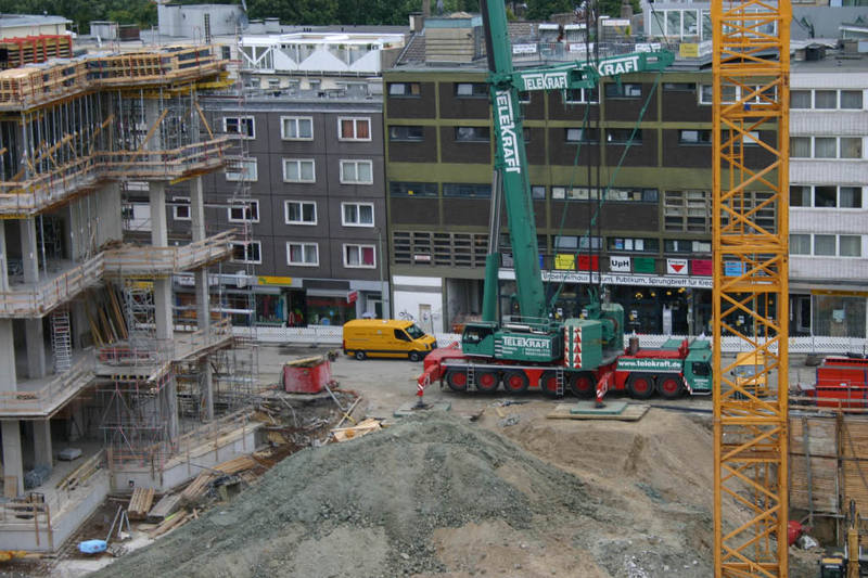 Ich schau gerade in der Webcam http://www.limbeckerplatz.com/mw2.jpg und sehe da wat gelbes in der Nähe der Rundung. Sieht mir nach nem Schnelleinsatzkran aus. Vermute Liebherr K Reihe.