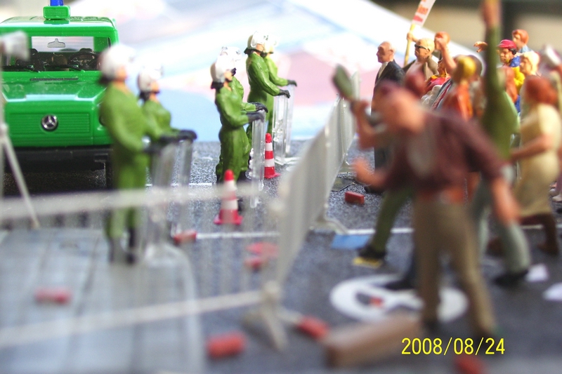 echt nette Bilder...mich würde interessieren wo du die Bereitschaftspolizisten mit den Schilder her hast (echt nettes Detail)?