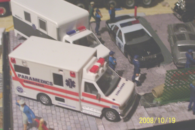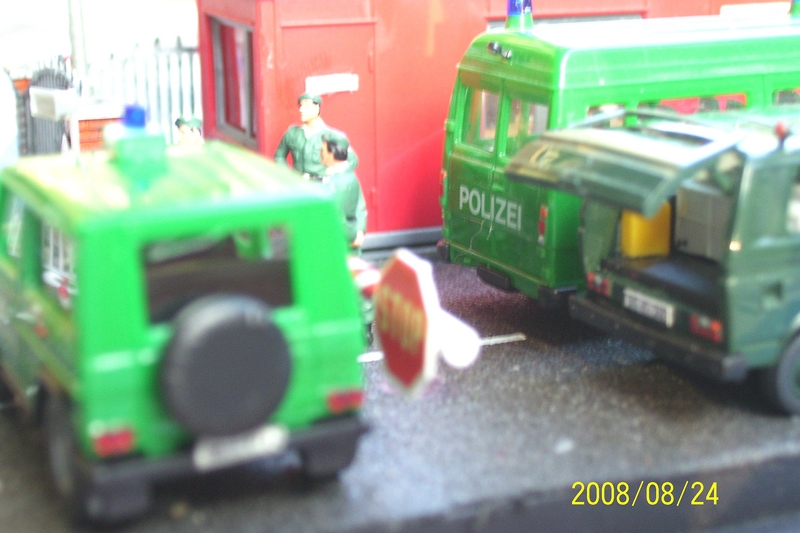 Das Diorama ist (natürlich) noch nicht fertig, es sind noch weitere Polizisten angefordert, zudem sehen einige Fahrzeuge noch zu sauber aus, da wird noch daran gearbeitet ;-)