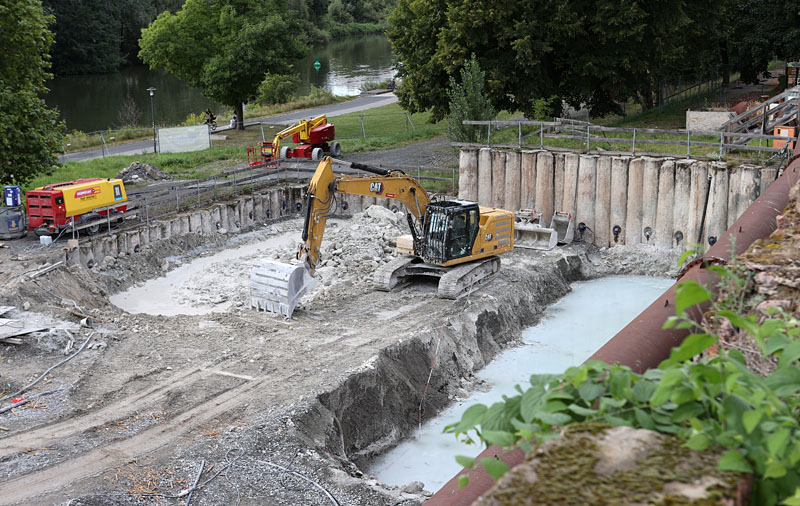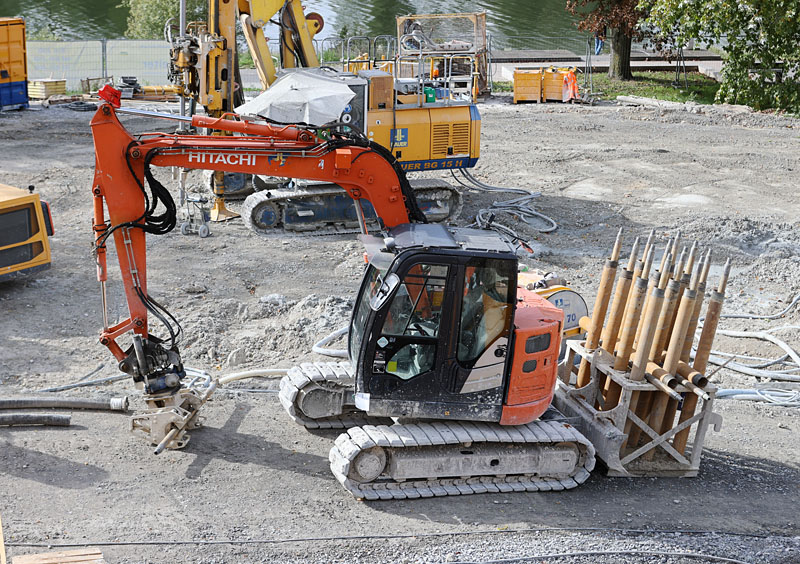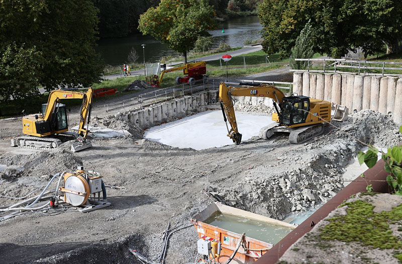 Im mainseitigen Teil der Baugrube sieht es so aus, als habe man eine Sauberkeitsschicht angelegt - aber ich keine Ahnung, wofür...