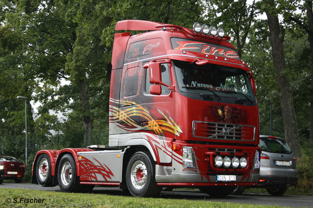 Meistens sind diese Feste auch schöner für alle, sowohl für die Jungs mit den Autos, als auch für die zum Knipsen, denn in Jönsköpping ist das Gelände eingezäunt, es besteht nur Zutritt während der Öffnungszeiten der Messe, ansonsten laufen da scharfe Hunde rum und aus eigener Erfahrung weiß ich, das man auf den Festen die auserhalb stattfinden die LKW´s früh morgens in Ruhe und ohne störende Zuschauer erwischen kann, oder beim Putzen mit den Fahrern und Besitzern in Ruhe etwas plauschen oder die Jungs auch Nachts ihre Lightshows abziehen.
