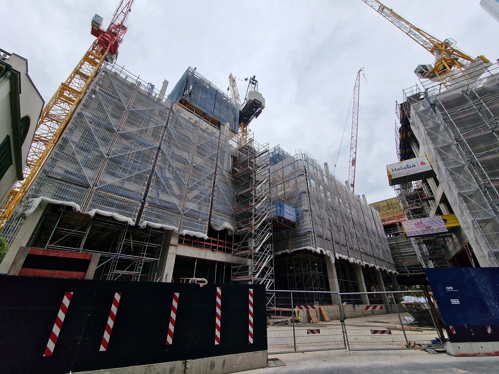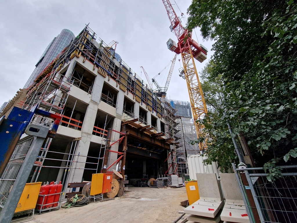 Der zweite Hochhaus-Kran wurde vor kurzem montiert und der Bau des Turms ist in vollem Gange.