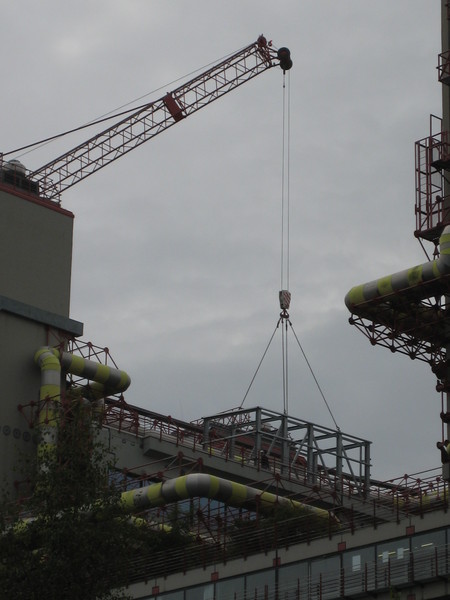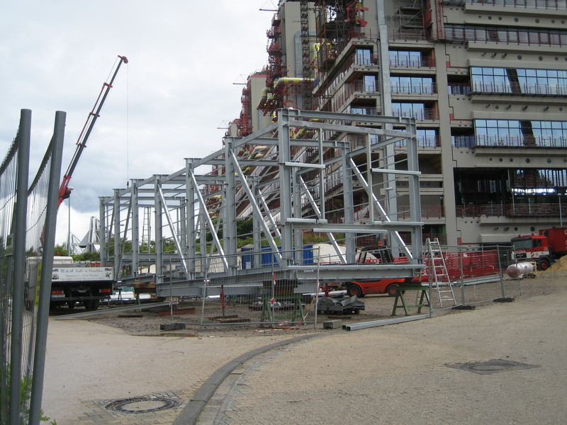 Als ich heute dort ankam, sah ich ein großes Stahlgerüst am Boden Am 12. August soll dieses dann aufs klinikum gehoben werden, wie mir die Stahlbauer mitteilten. zum benötigten Kran konnte mir leider niemand was sagen, aber wird schon etwas größeres kommen müssen.