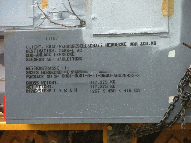 Dürfte sich um die Turbinenteile für die 400MW GuD-Anlage des Cuno-Kraftwerks in Herdecke handeln. BTW. der über 200m Hohe Schornstein wird nicht mehr genutzt, bleibt aber stehen, da der Abriss zu teuer sei.