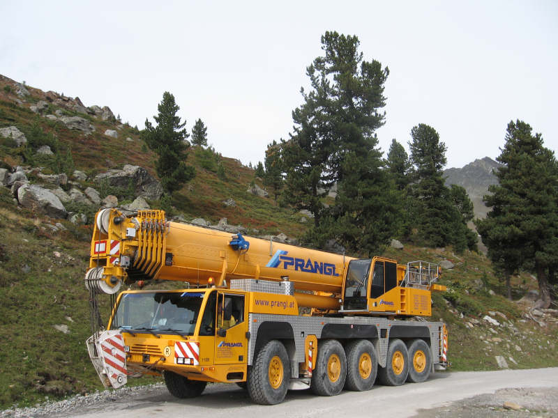 Solche Zufahrtsstrassen zu den Liftanlagen sind zwar schmal gebaut, sind aber wie man auf den Fotos ja sieht Felsenfest und natürlich auch für solche Gewichte ausgelegt.Bei den Zufahrten zu Windanlagen ist es ja ähnlich.Der Kran mit 60to Eigengewicht ist noch lange nicht das schwerste was auf diesen Strassen fährt. -- © - Copyright liegt bei "Oliver Thum".