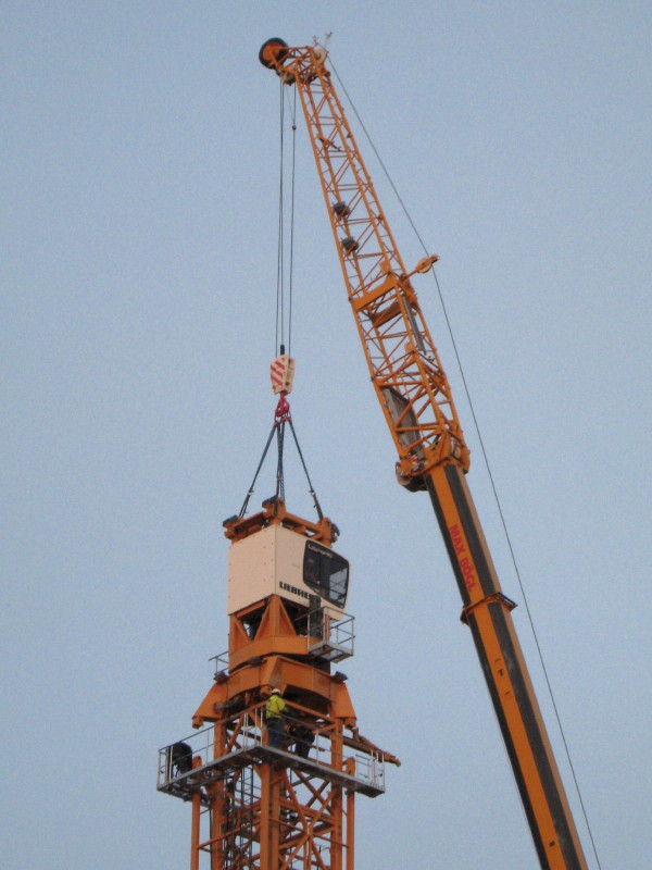 Wenn ich das richtig sehe, besitzt der Kran auch einen verstärkten Katzantrieb und wenn ich mir die Windentrommel so anschaue, dann erinnert mich diese stark an die der 630er die zu Anfang an der EZB Frankfurt standen, bevor dort die 540er Wipper auf die 500 HC Türme kamen.
