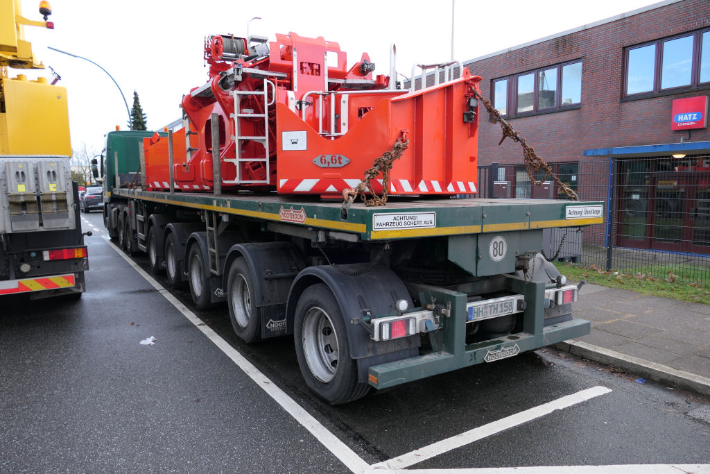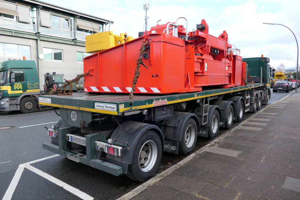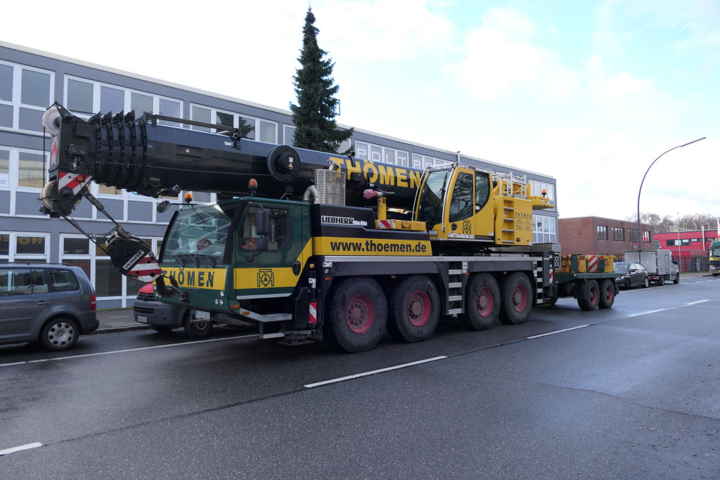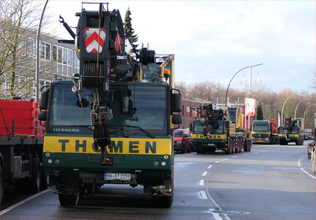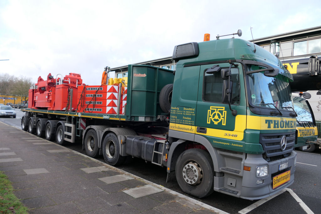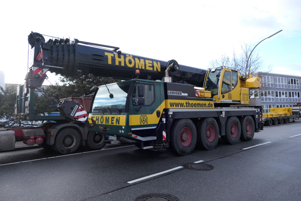 Ich würde mal die Vermutung einwerfen, dass der neue 700 to einfach schon vor der Übernahme für die Hüffermann Gruppe bestellt war und nun kurzerhand in den Thömen Fuhrpark übersiedelt wurde. Umlackieren bei einem Neugerät ist sicherlich zu teuer.