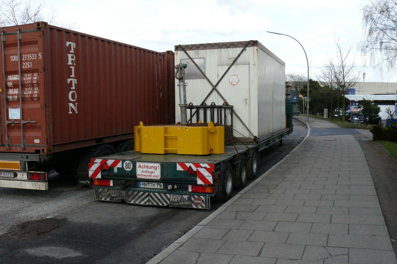 Habe hier auch noch welche von ein paar Begleittransporten. Die ersten sind zwei Leipziger, mit Kontergewichten und Abstützplatten. Die anderen zwei gehören zu den Begleitern des LTM 1500 Potsdam (der leider auf dem Hof geparkt wurde, wie immer öfters auch die Zugmaschinen).