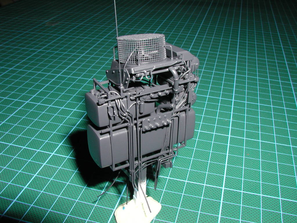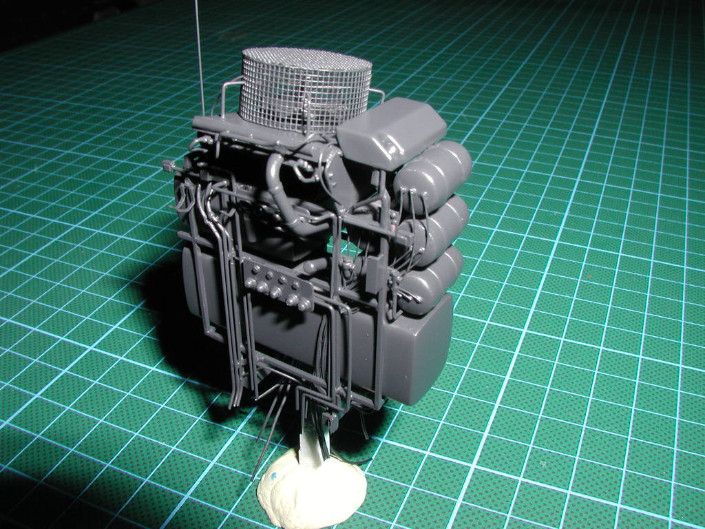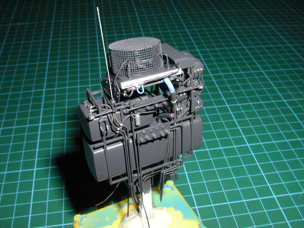 Hallo zusammen, ich habe nun mit Druckersilber die einzelnen Anschlüsse bemalt. Die Schläuche habe ich in Mattschwarz bemalt, somit ist der Schwerlaststurm bis auf den Druckbehälter fertig. Aufgrund des Blitzes beim Fotografieren ist alles ziemlich hell und eintönig, am Ende aber wenn ich das Modell in Hochauflösung fotografiere, werde ich es wieder im Freien und vor passendem Hintergrund ablichten.