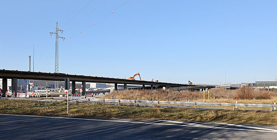 Hier war's auch lange ruhig... Inzwsichen sind die beiden neuen Rampen fertiggestellt, im Lauf der letzten Woche wurde die Verkehrsführung stückweise auf den nächsten Bauabschnitt umgestellt: Über die beiden neuen Rampen läuft der Verkehr ausschließlich stadtauswärts(!), die eigentliche Brücke und die beiden alten Rampen sind gesperrt. Der Verkehr stadteinwärts wird offiziell über die Weiherstraße umgeleitet, tatsächlich gab's aber Donnerstag und Freitag stellenweise größeren Stau auch im Gewerbegebiet St. Georgen Ost. Mal schauen, ob sich das noch "zurechtruckelt"...