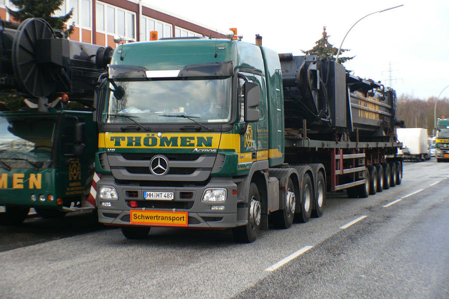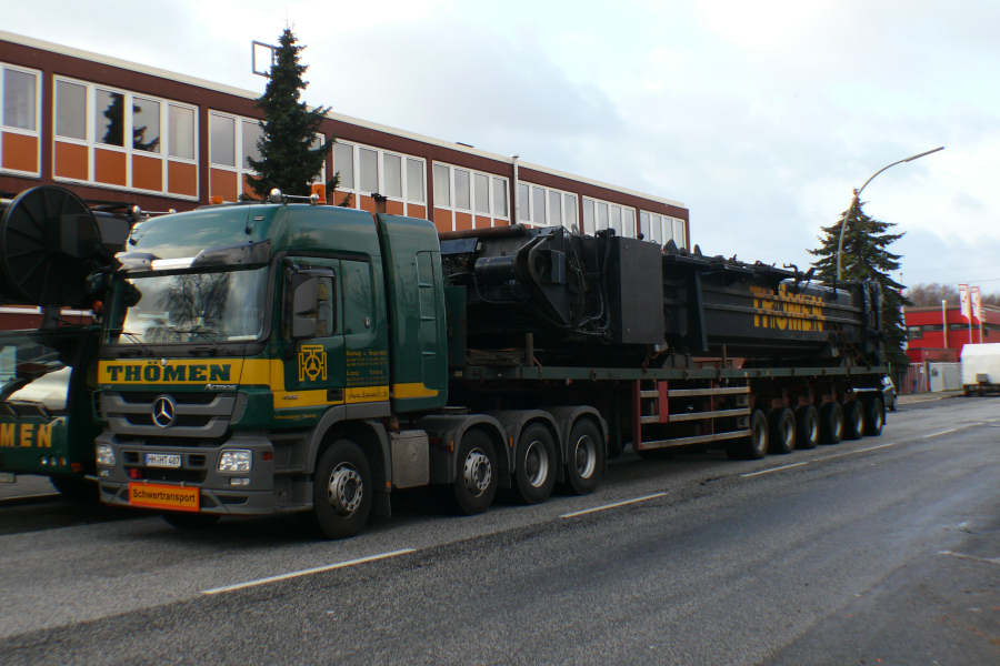 Thömen MB 4160 MP3 mit Nooteboom OVB 102-06 beladen mit LTM 1800 Mast.