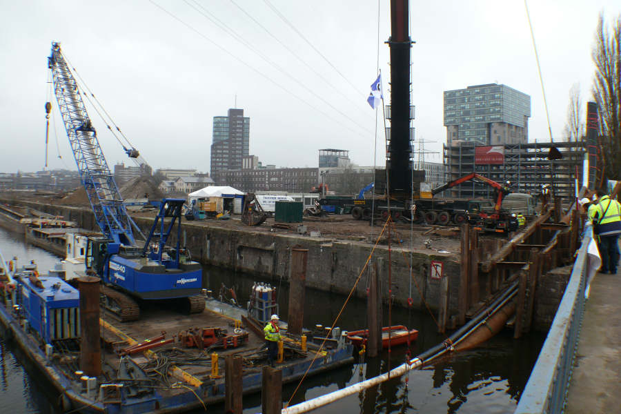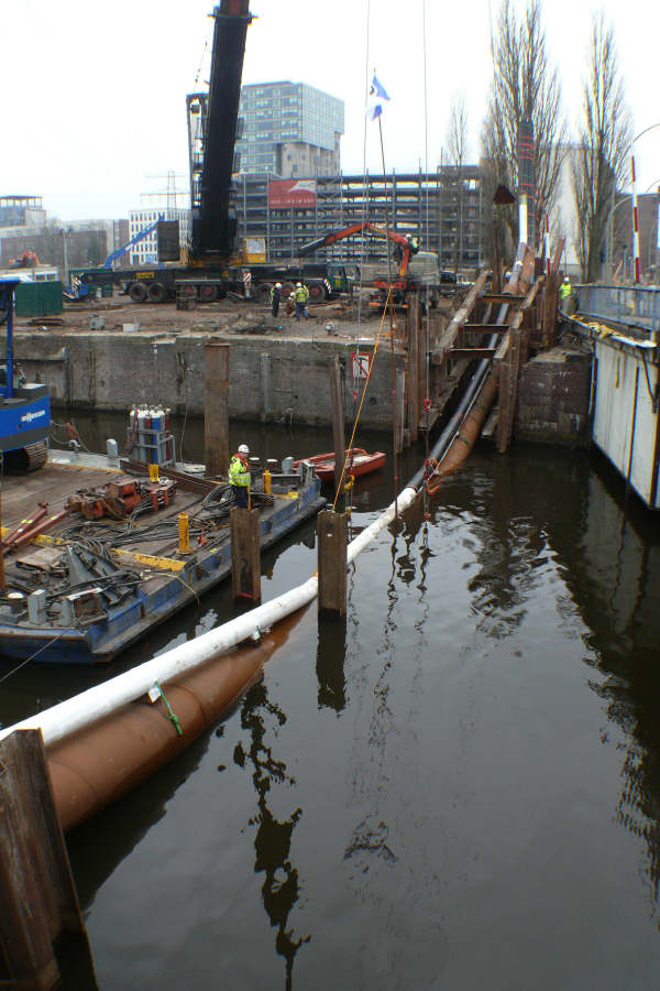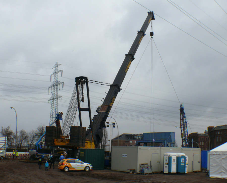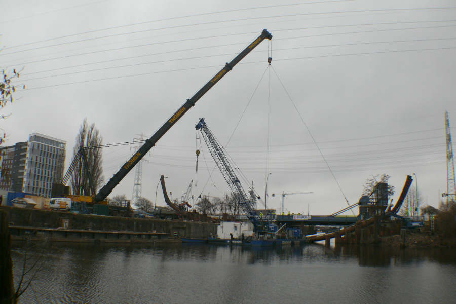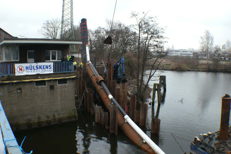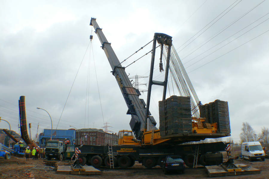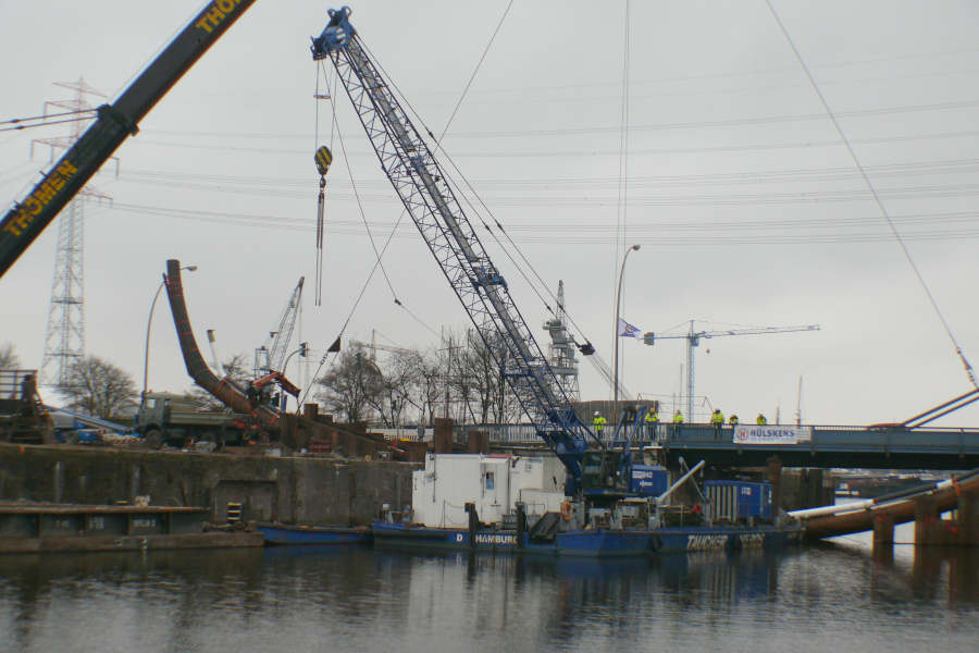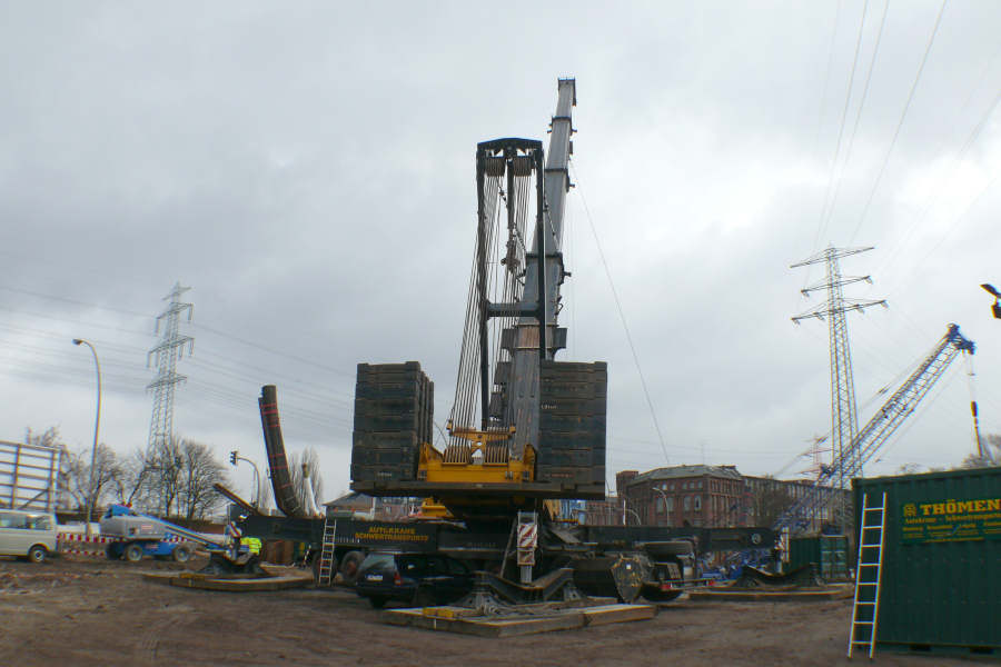 Thömen hat heute in HH Harburg, mit dem LTM 1800, einen Düker für Hülskens Wasserbau gesetzt