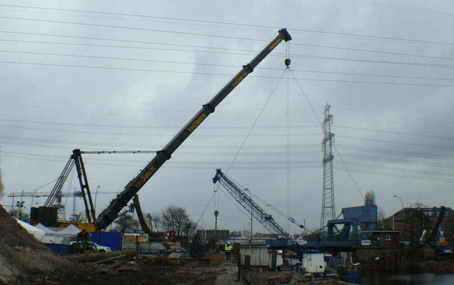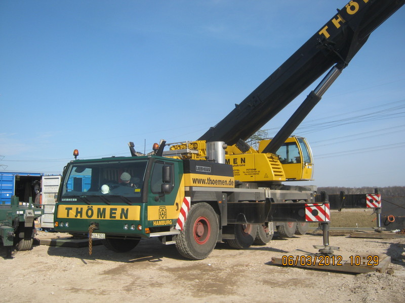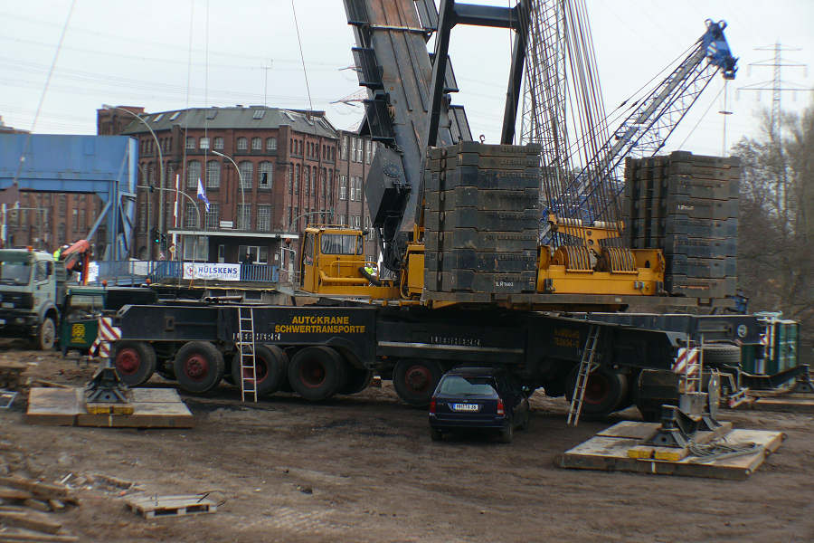 Thömen steht mit dem LR1400 und einem LTM 1500 mit Wippe(nicht von Thömen) immer noch (oder schon wieder) im Schönebecker hafen. Sieht nach Brückenteilen und einer Kolonne aus. Ich werde morgen nochmal hingucken.