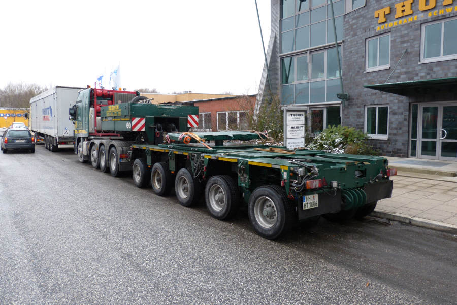 MB 3348 Actros MP 2 mit Nooteboom 4achs Broshuis Semi und Ballast LTM 1200-5.1